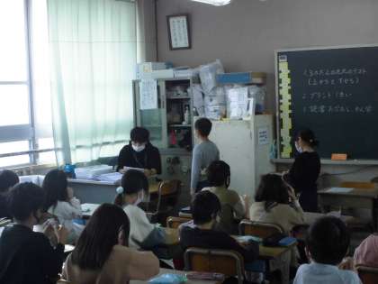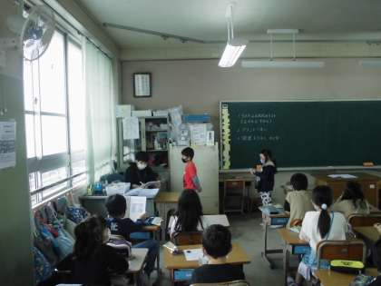 2年2組算数の授業です。「九九」の「三の段」のテストをしていました。きちんと覚えてください。
