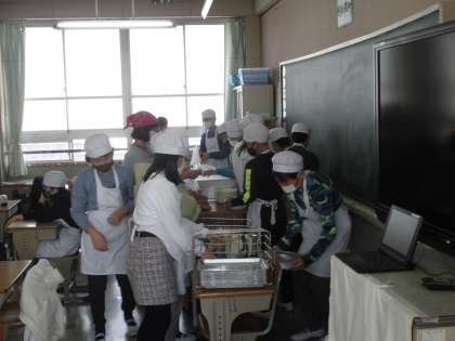 6年生の様子です。静かに給食の準備が進んでいます。さすが6年生、作業がとてもスムーズです。