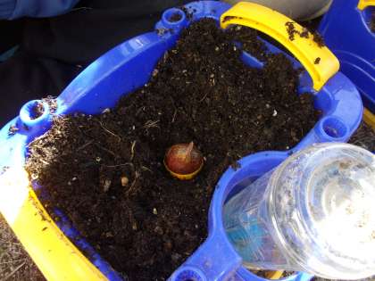 鉢植えの整理をして、今度はチューリップの球根を植えます。