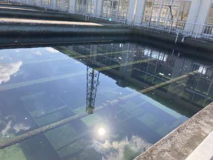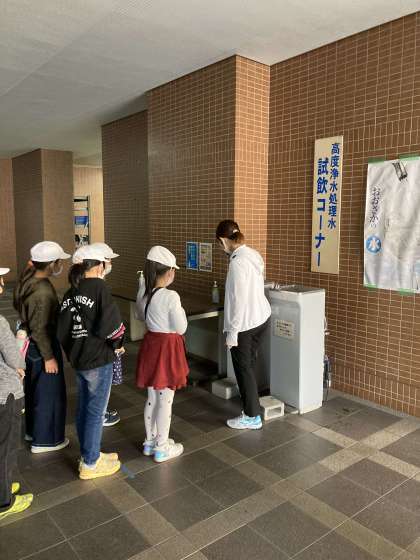 最後に高度浄水処理され、においもなくなったできたての水を試飲させていただいています。
