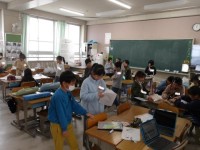 2年生の様子です。1組は代表児童が前に出て、出席確認をしていました。2組は担任の先生からは、雪道での歩行は十分に注意してくださいと、自分の体験を交えながらのお話がありました。