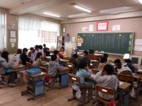 1年2組です。6年生に贈る卒業記念品を作っていました。紙コップを使っての写真立てです。はさみの使い方が、とても上手になりました。