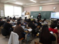 6年生の教室です。体格はうんと大きくなりました。5年間の成長です。たくさん食べて、もっと大きくなりましょう。