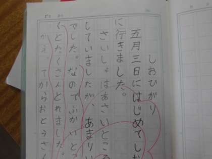 2年2組国語科の授業です。きちんと、ていねいに書けている作文がありました。