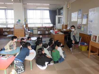 1年1組読書活動の時間です。図書館サポーターの方が、絵本の読み聞かせをしてくださいました。静かに聞き入って様子が、とてもかわいかったです。