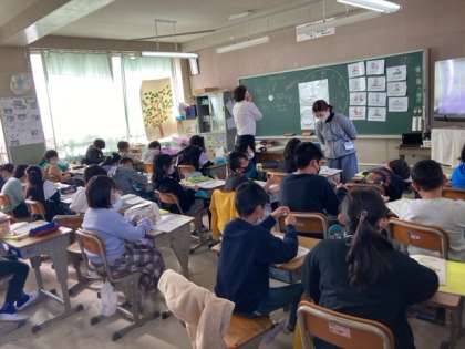 上が4年生の外国語活動の様子です。ネイティブスピーカーさんと学習をしています。