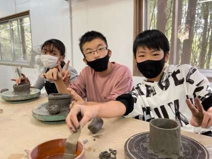 はじめての陶器作り、とても楽しそうに取り組んでいます。
