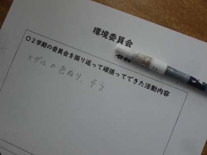 環境委員会の様子です。2学期の振り返りを、各自でプリントに書いていました。これからの活動に活かすようにしてください。