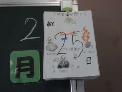 6年生の教室です。卒業式まで登校する日数、「あと25日」と黒板横に掲示されていました。今の教室で、今の級友と過ごすのも残りわずかです。6年生の皆さん、みんなで仲良く過ごしてください。