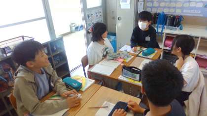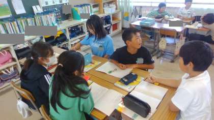 奈良への校外学習で外国の方にインタビューをしたみんな。この経験を糧に、改めてインタビューをするときに大切なことを学習しています。学校内でもインタビューをしようと画策中です。その話し合いの様子です。