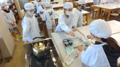五年生の最初の実習は、美味しいお茶をいれることです。