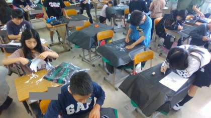体育大会本番で着用予定の法被に、漢字一文字のデザインをします。それぞれで字を選び、今日は下書きをしました。思いのこもった法被をまとい、当日全力の演技をしてもらいたいです!実際に着用して「かっこいい〜!」と嬉しそうでした。