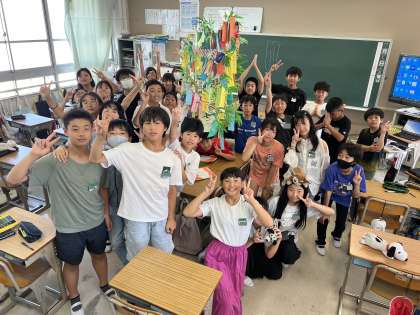 願いを書いた短冊を笹に飾る!ですよね。それぞれ2個までならOKということで、各々の願いを込めて書いていました。懇談でお子様の短冊をぜひ探してくださいね☆