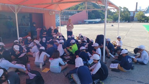ミニオリエンテーリングのグループは、施設の中にあるクイズを探し、答えていきます。