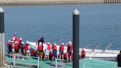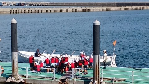 カッターに乗るチームはしっかりスタッフの方のお話を聞いていました。もうすぐ出航です。