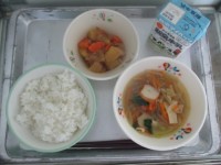 今日の「冬野菜カレーライス」には、いつものにんじん・たまねぎ・じゃがいもの他に、かぶ、カリフラワー・れんこんといった冬が旬の野菜が入っていました。