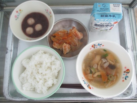 今日は朝早くから調理員さんが丁寧に時間をかけて小豆を炊いて作ってくれました。優しい甘さでホッとする味でしたね。