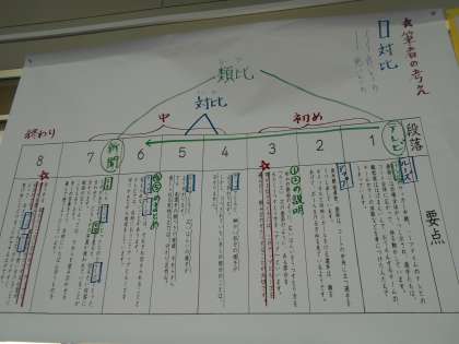 「対比」や「類比」が用いられていることや,筆者の考えが繰り返し述べられていることなどに気づくことができました!