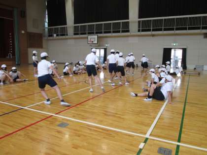 体育の時間に,スポーツテストの「反復横とび」を実施しました。子どもたちは,真剣に集中して取り組んでいました。