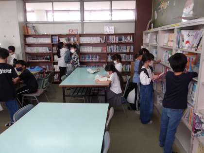 4年生最初の図書の時間です。高学年コーナーを利用しています。