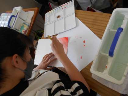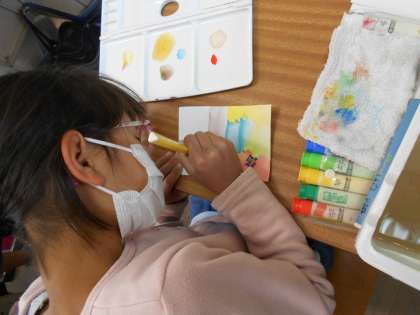図工では,自分の心の中を表す「心のもよう」の制作をしています。