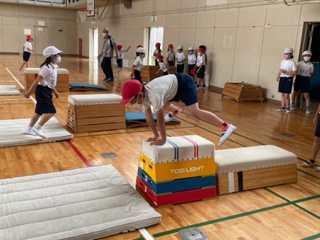 2年体育 とびばこ 開脚飛びにちょうせん!1 公開日 2022/05/16 更新日 2022/05/16 2年 体育館の授業では現在とびばこで開脚跳びを練習しています。自分のレベルに合わせてスモールステップで練習しています。すごく上達した子も多いです。