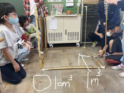 5年生 体積 公開日 2022/05/18 更新日 2022/05/18 5年 今日は「1立方メートル」は「1立方センチメートル」がいくつ分を考えました。 実際に作ってみると大きくてビックリ!! 学習したことを活かして,自分の考えをしっかりと書き,考えることができました。