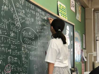 学級会でクラスの目標について話し合いました。クラスのみんなでどんなことを頑張っていけばいいのか?という点について,真剣に話し合いました。みんなの意見を書いた黒板は,素晴らしい考えでいっぱいになり,非常に良い学級会になりました!