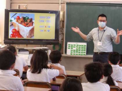 外国語活動ではNS(ネイティブスピーカー)の先生と授業をしています。