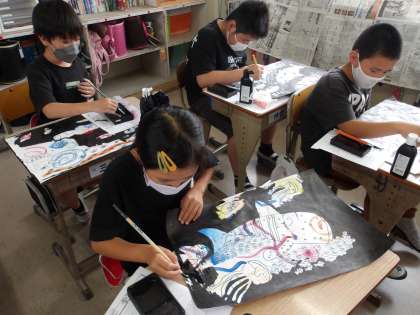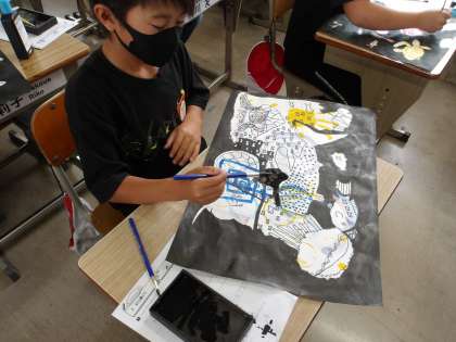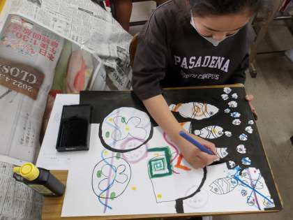 生き物と生き物の間や,その周りなど細かなところも上手に墨をつけています。