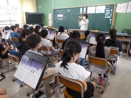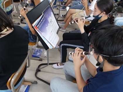 音楽の授業では,歌唱やリコーダーをしています。特にリコーダーでは,難しい指づかいにチャレンジしていますね。たくさんの音が出せるようになりました。