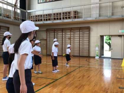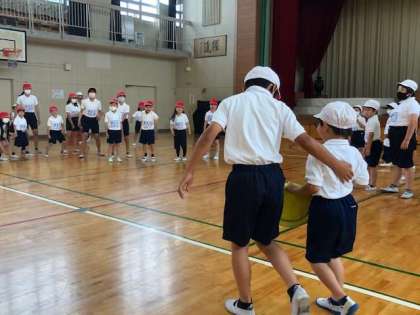 1年生と一緒にスポーツテストを行って,最後に少しだけレクリエーションをしました。これからも他学年との交流を通して,良いお手本を見せていけるようにしていきましょう!