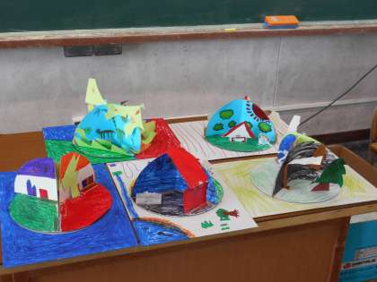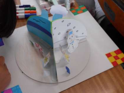 くるくるランドの仕上げに取り掛かっていました。 自分のイメージした世界は表現できたかな?