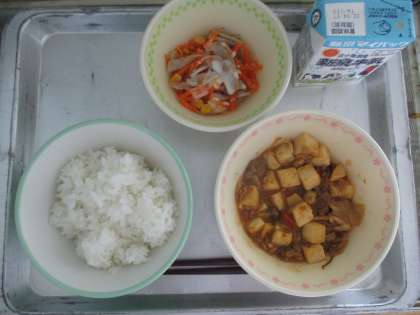 今日の献立は ・ごはん ・牛乳 ・カレー豆腐 ・キャロットサラダ でした。