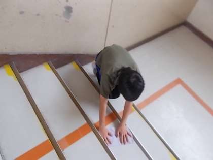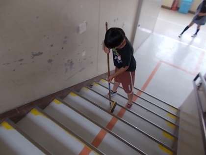 掃除の時間の様子です。みんなが通る階段をピカピカに掃除してくれています。