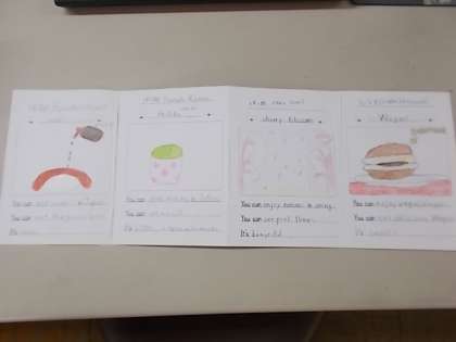 6年生 外国語「パンフレットづくり」 公開日 2022/07/06 更新日 2022/07/06 6年 外国語では,日本の文化を紹介するパンフレットを作成中です。自分でアルファベットを使って紹介文を書いています。絵もとっても上手ですね。