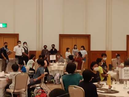 入館式の様子です。実行委員の皆さんの司会のもと、ホテルの方から、ホテルの利用についてお話しがありました。今日1日よろしくお願いいたします。