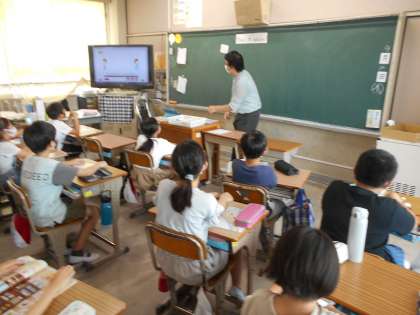 ジョナサン先生との外国語の授業です。 チーム対抗のミニゲームでは,どのクラスも外国語に親しみながら大盛り上がりでした☆