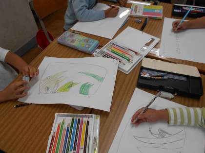 教室で2週間ほど一緒に過ごしてわかった生き物のことについて,発表会に向けて図鑑や絵本にまとめています。ともだちに発表するためにみんながんばっています。