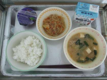 10月17日(月) 今日の給食 公開日 2022/10/18 更新日 2022/10/18 給食・食育 10/17(月)の献立は ・ごはん ・牛乳 ・チゲ風みそ汁 ・チャプチェ ・フルーツゼリー(グレープ) でした。