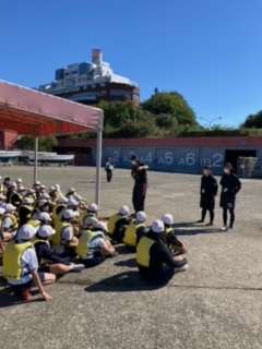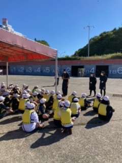 午後の活動、カヌーグループです。 係の人から説明を聞いてます。