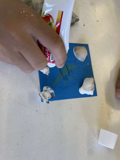 シェルメモリーグループの様子です。 砂浜で拾った貝殻を使ってます。