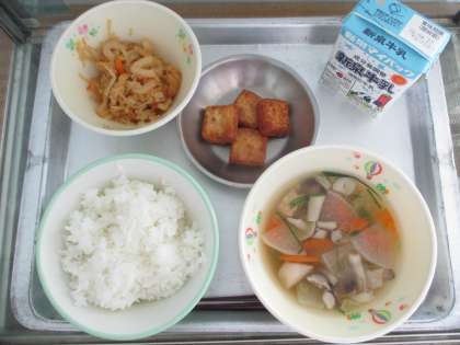 「のっぺい汁」は日本の各地で食べられている郷土料理の一つです。大根や里芋、にんじんなどを出汁で煮込んだ具沢山の汁物です。今日は鶏肉やきのこも入っていて、素材のおいしさがしっかり味わえます。