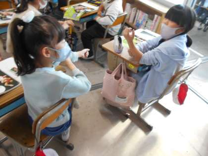 「骨があるからかたい!」「ここは筋肉だと思う!」など実際に自分の体を触り友だちと交流していました。