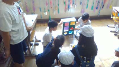 今日は作ったおもちゃを友だちに遊んでもらいました。