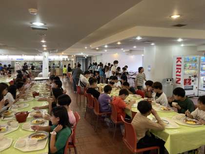 二日目の活動を終え、昼食です。 海洋センターで食べるご飯も最後となりました。