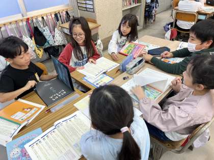 国語「はんで意見をまとめよう」では,1年生・2年生に読み聞かせをする本について話し合いました。子どもたちは,「1年生には,短くて分かりやすい本のほうがいいね!」や「クイズがあるほうが楽しいかな?」と楽しそうに本を選んでいました。来週の本番に向けて,たくさん練習をして,喜んでもらえるといいですね。