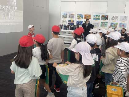 いろいろな自転車に目を光らせて時間一杯まで見学しました。 ここでも実行委員さん堂々とあいさつできました!!