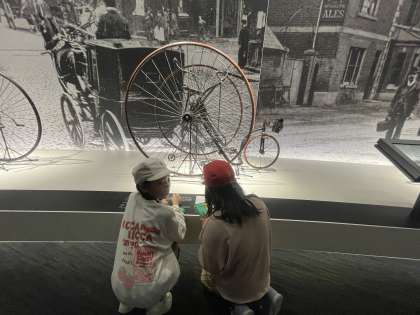 車輪の大きさが違う自転車について調べたり,たくさんの自転車がある中で自分が気になった自転車について調べたりする姿が見られました。特に5人乗りの自転車には驚きましたね。