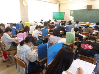4年生 算数「折れ線グラフと表」テスト 公開日 2024/05/14 更新日 2024/05/14 4年 これまで学習してきた「折れ線グラフと表」のテストを行いました。これまで精いっぱい学習してきたからこそ、良い結果を残そうと頑張る姿が印象的でした。次の単元の学習も頑張ってくださいね!テストが終わった後は、それぞれが自分で選んだ「個別最適な学習課題」に取り組んでいました。